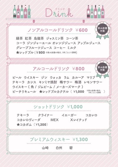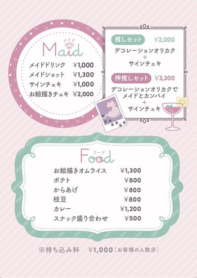 メニュー手作りフードあり,オリカクあり,オリシャンあり,チェキあり,